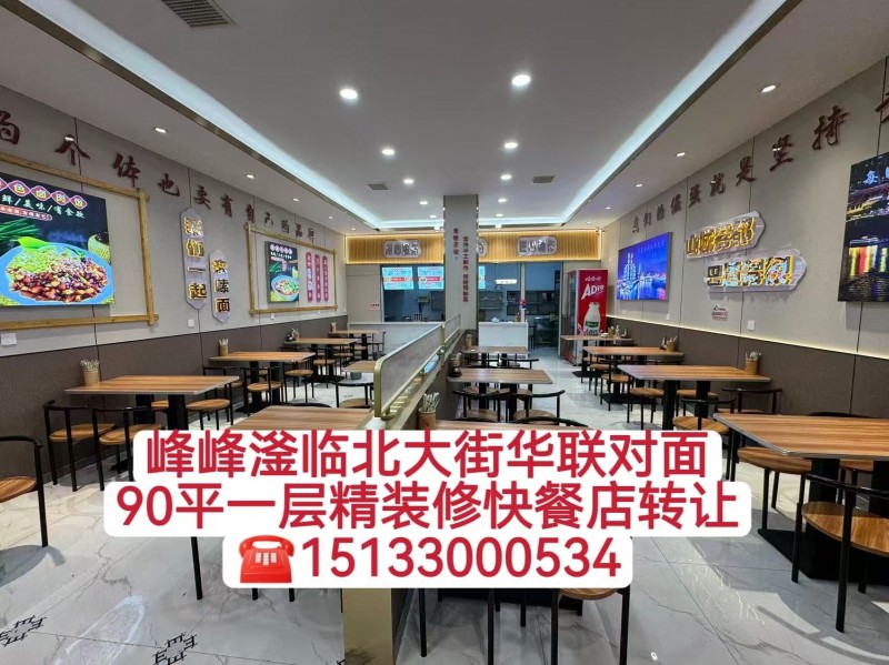 急转峰峰繁华商圈,新世纪附近,华联商场斜对面,临街一层90平精装修快餐店转让,挨着聚联商场,天都商场!自带客流!个人原因顾不过来,门头大,非常显眼!